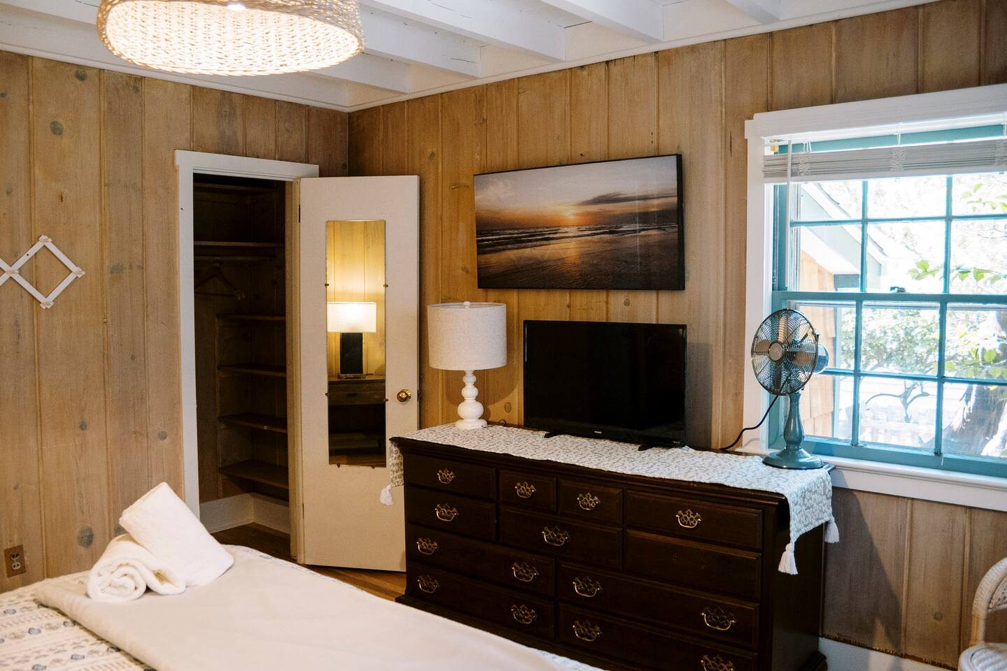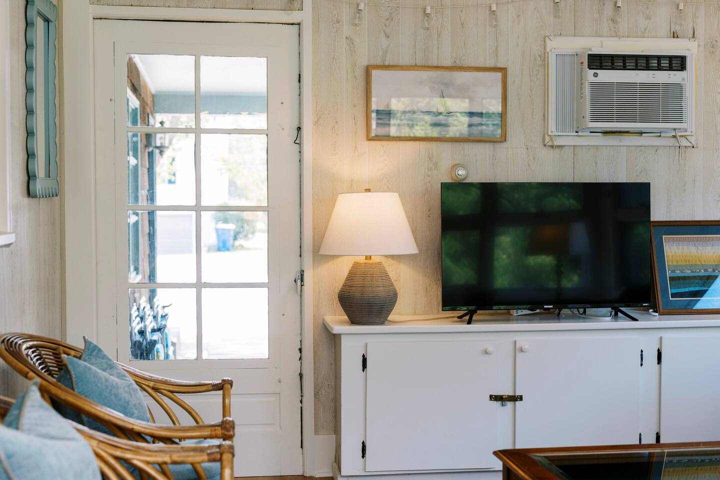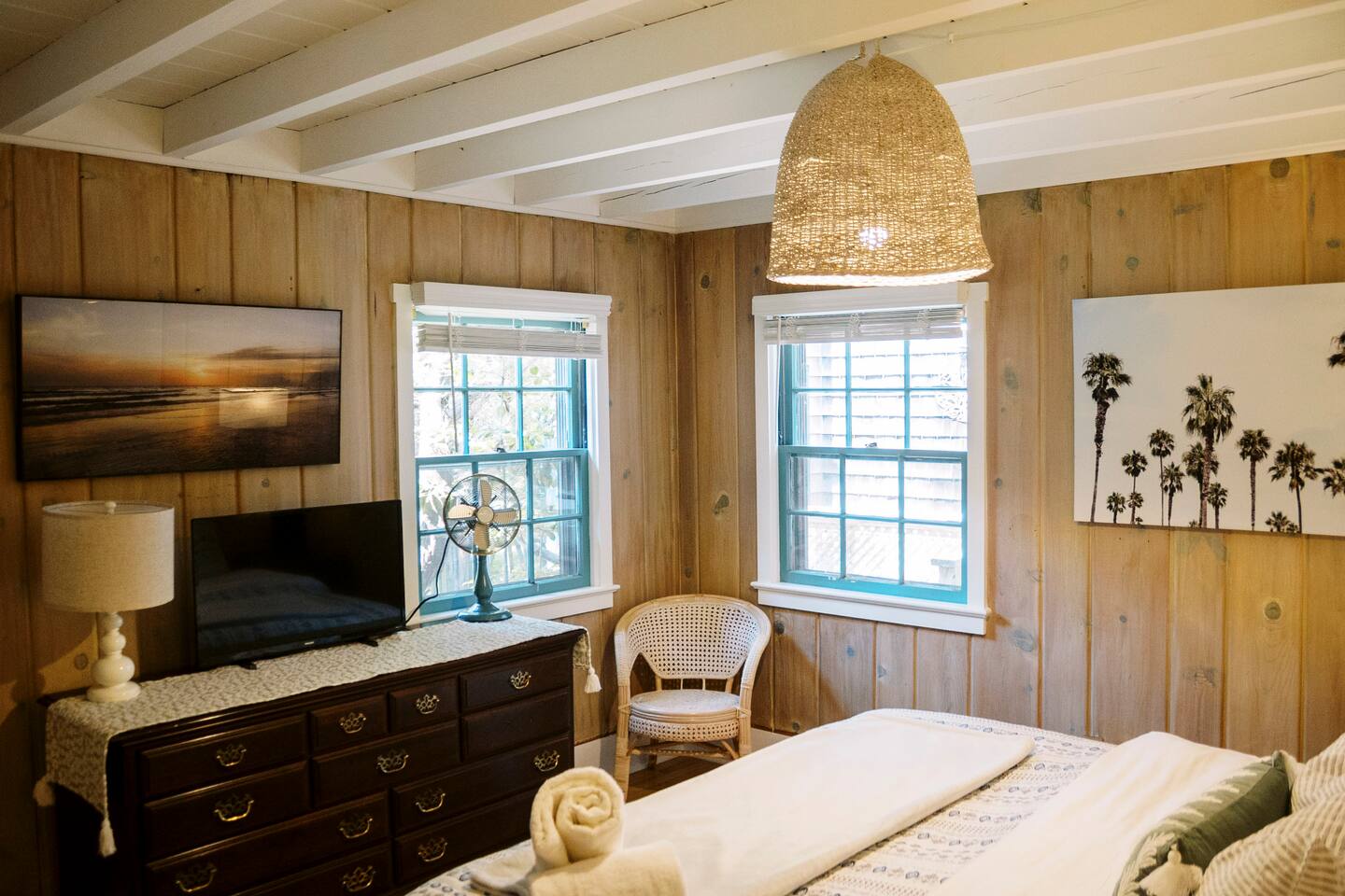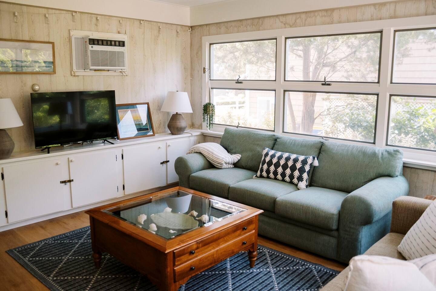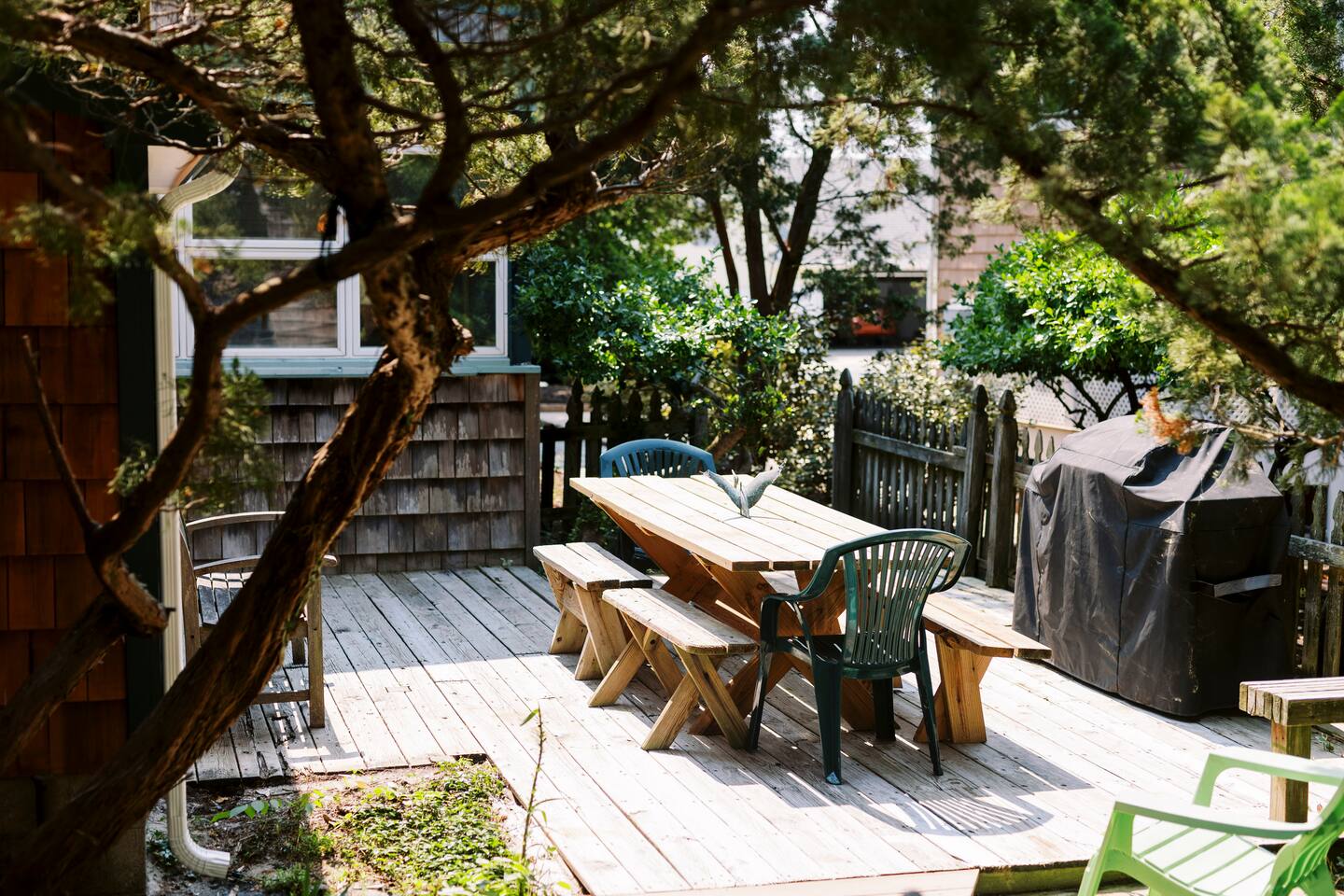 Walk 10 steps and you are at the beach! 4 bedrooms, 2 bathrooms Beach chairs included Perfect for families or groups who want to spend their days close to the sand in a charming beach cottage Newly refreshed with high quality bedding and furnishings 2 separate living spaces with TVs and an outdoor private deck Can accommodate 9 people comfortably Games, books, puzzles and all cooking supplies Parking for 4 cars All towels and linens provided