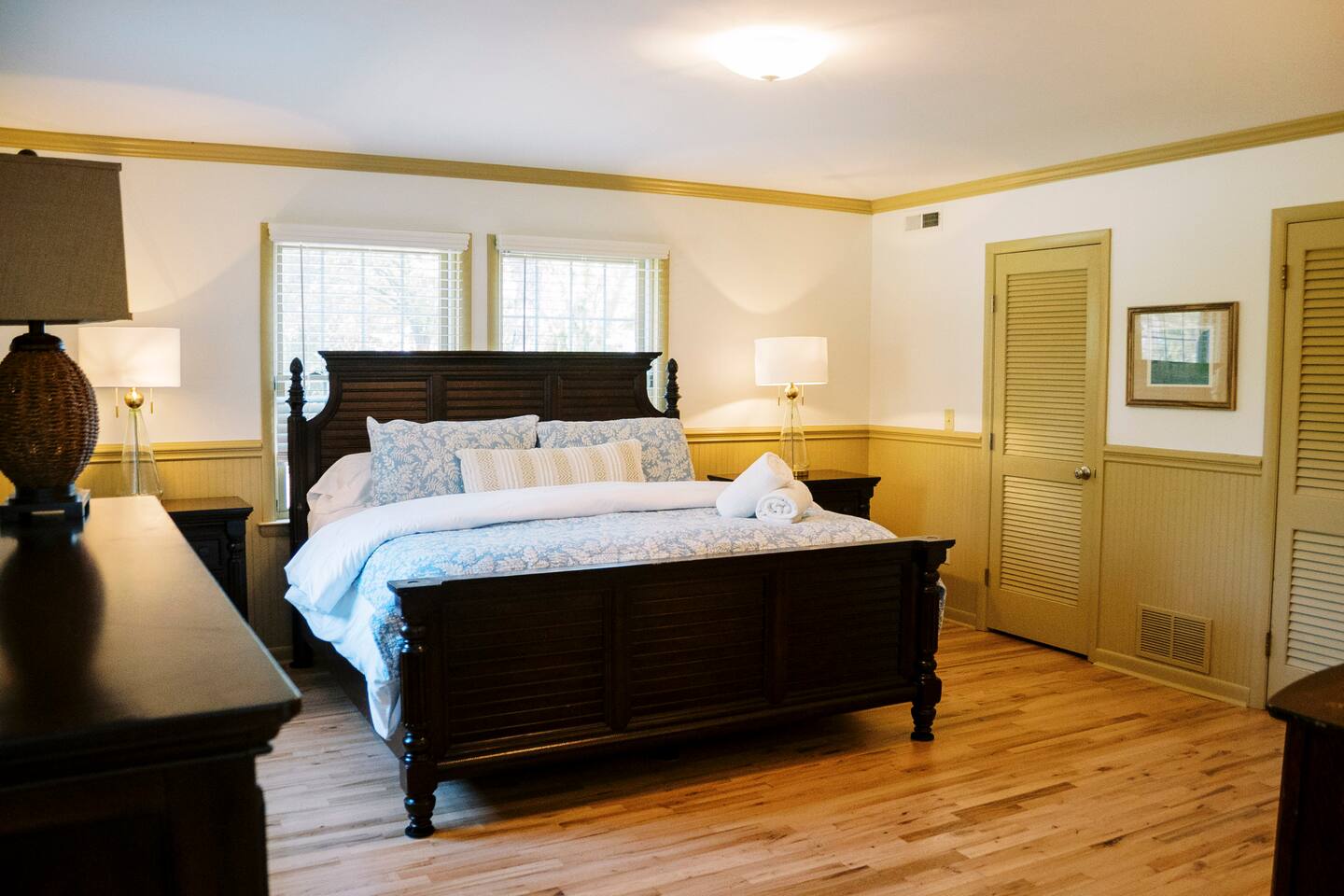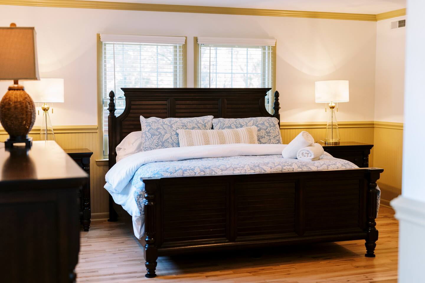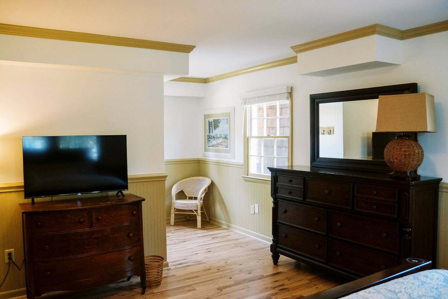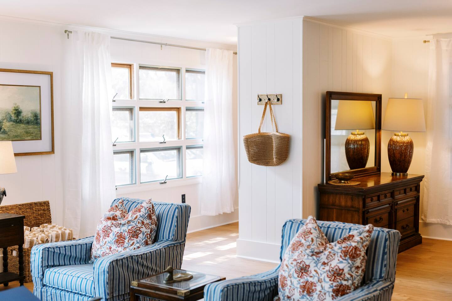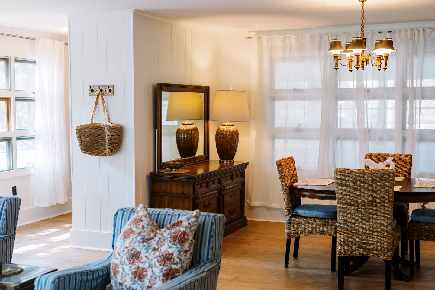 Walk 10 steps and you are at the beach! 4 bedrooms, 2 bathrooms Beach chairs included Perfect for families or groups who want to spend their days close to the sand in a charming beach cottage Newly refreshed with high quality bedding and furnishings 2 separate living spaces with TVs and an outdoor private deck Can accommodate 9 people comfortably Games, books, puzzles and all cooking supplies Parking for 4 cars All towels and linens provided