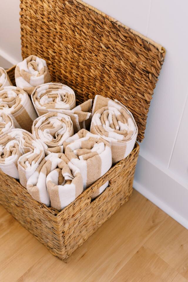 - Beach essentials Beach towels, umbrella, beach blanket, snorkeling gear