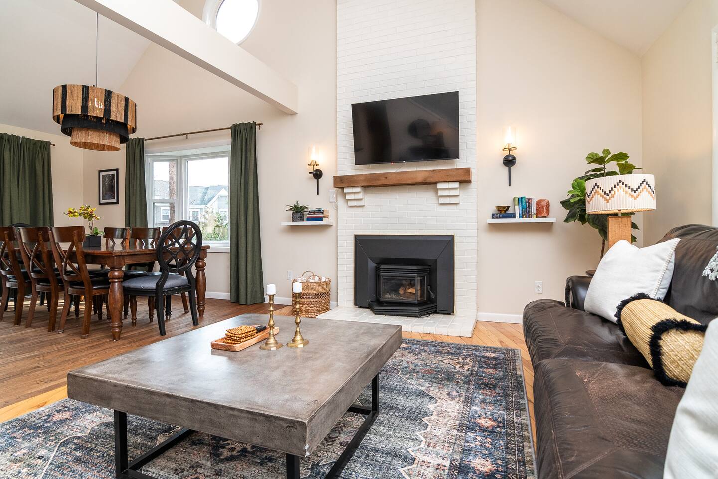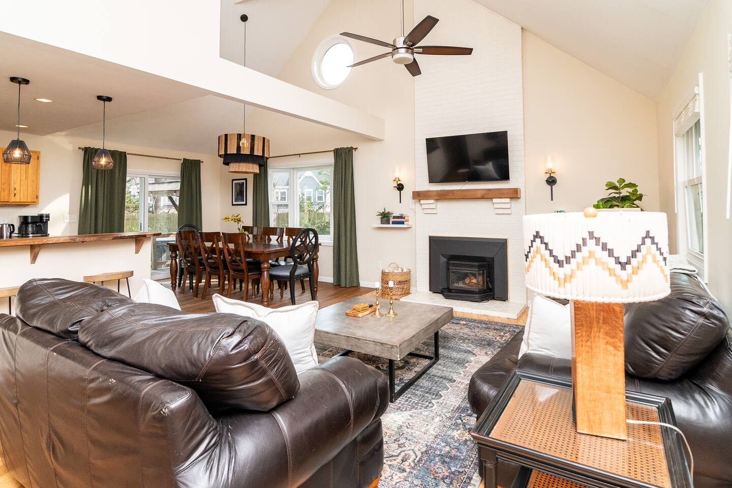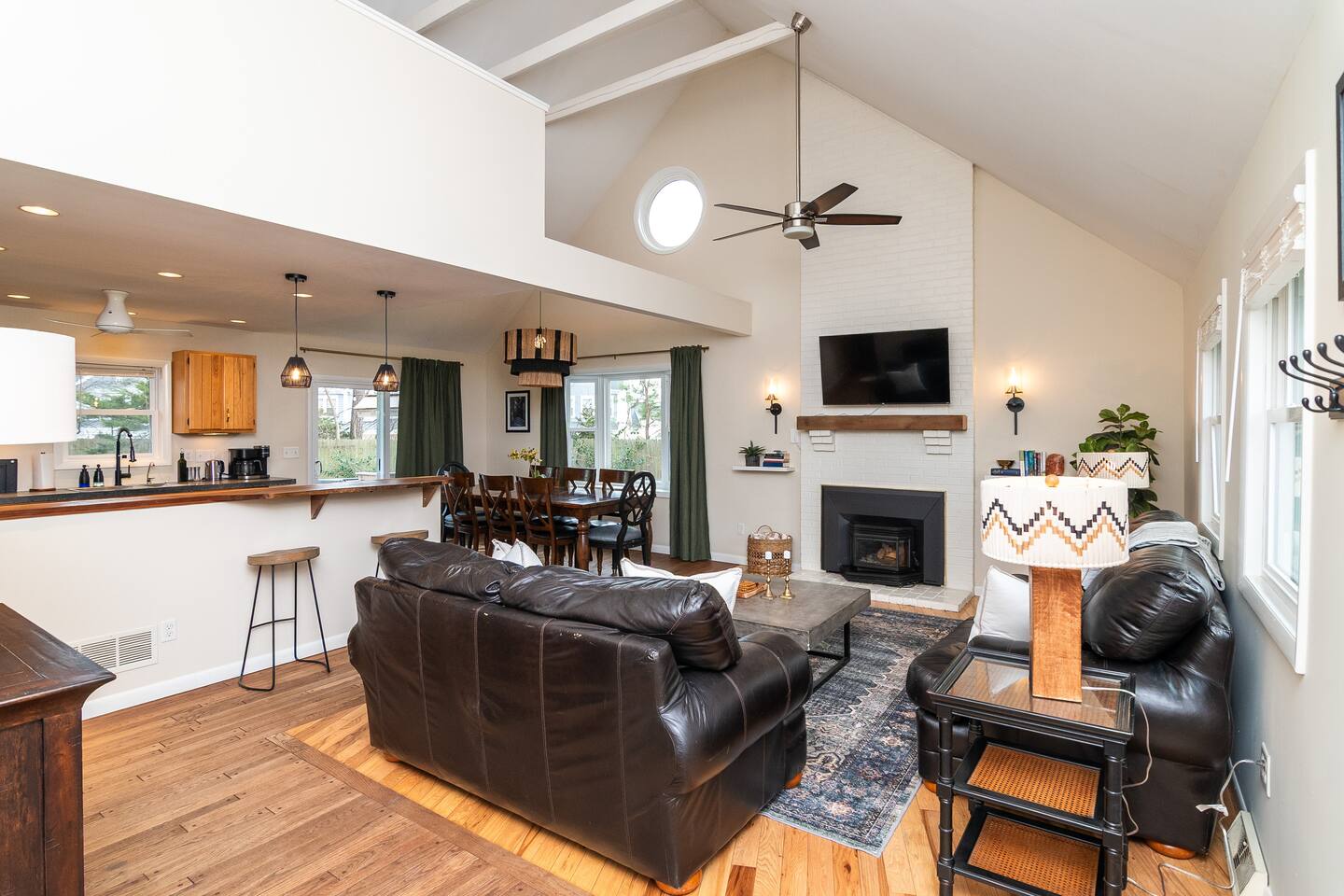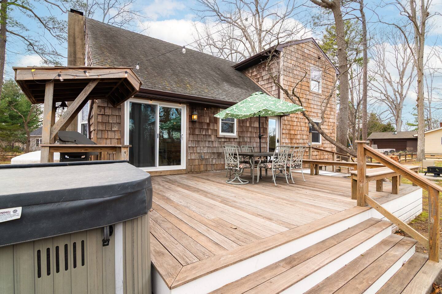 This private, beautifully updated cedar shake home is the perfect getaway to relax and explore coastal Delaware. The spacious 4 bed/2 bath home features an open-concept living area with unique character throughout. Enjoy a huge yard with mature trees, indoor-outdoor dining, a fire pit (wood provided), and a hot tub. With private bike trail access, you can ride straight into downtown Lewes to explore scenic paths, shops, the waterfront, the beach, the state park and award winning restaurants.