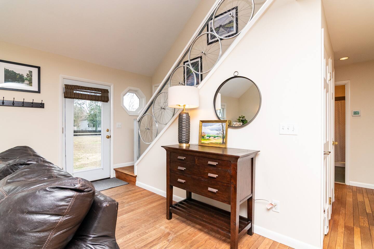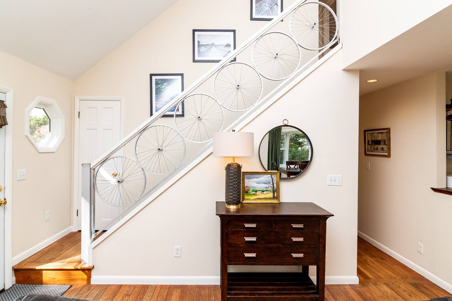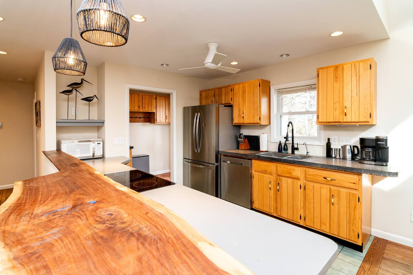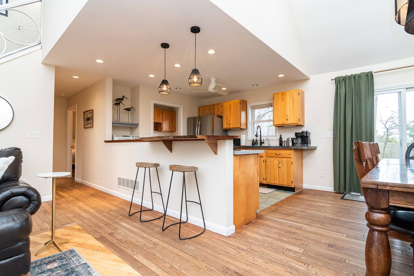 This private, beautifully updated cedar shake home is the perfect getaway to relax and explore coastal Delaware. The spacious 4 bed/2 bath home features an open-concept living area with unique character throughout. Enjoy a huge yard with mature trees, indoor-outdoor dining, a fire pit (wood provided), and a hot tub. With private bike trail access, you can ride straight into downtown Lewes to explore scenic paths, shops, the waterfront, the beach, the state park and award winning restaurants.
